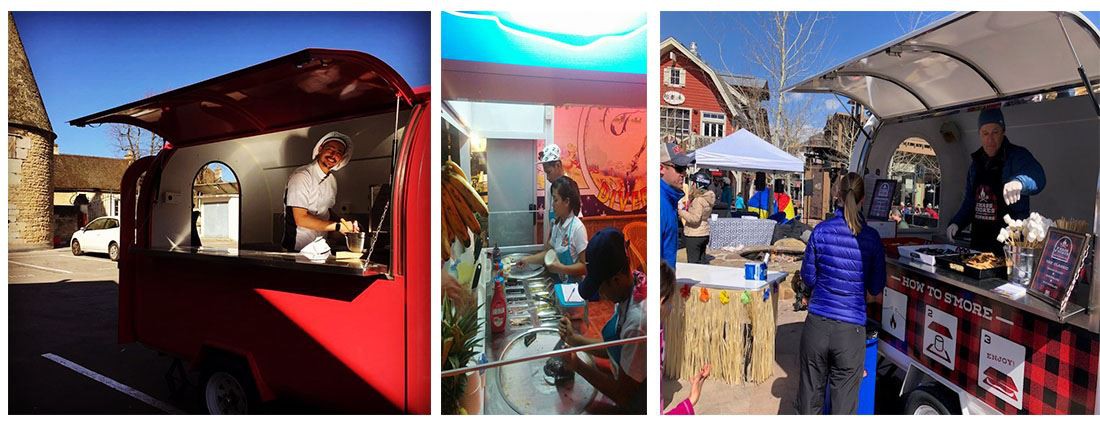 Food trailer is popular and potential product. It helps a lot to food/snack businessman. No rent and easy to move, selling snacks in front of shopping mall, in the park, in the street. It is very attractive. you can rent it to other people to earn good commission,it can be used to camper,station wagon, or selling all kinds of food, fruit,or commodity!it is multifunctional!